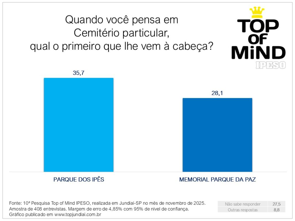 Cemitério particular é uma categoria restrita, e que em Jundiaí conta com apenas dois nomes efetivamente presentes na lembrança dos moradores. Ainda assim, os resultados mostram uma liderança bem definida.